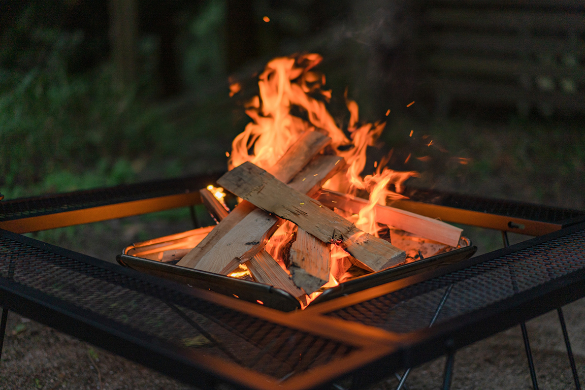 お部屋ごとに焚き火台を設置しておりますので、火が出来上がったらグルーブで炎を囲んで談笑してください。